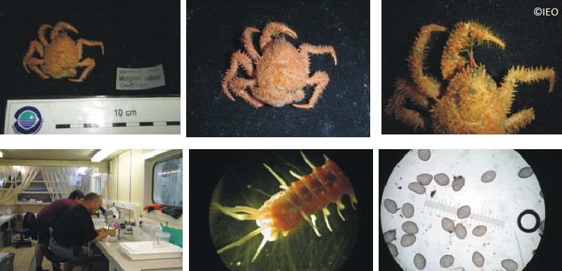Se analizaron un total de 29 especies de peces bentónicos, demersales y bentopelágicos, con un total de 345 contenidos estomacales examinados. Asimismo se recogieron muestras de musculatura para el análisis de isótopos estables de algunas especies. Se continúa con el análisis en laboratorio de las muestras obtenidas en la campaña.