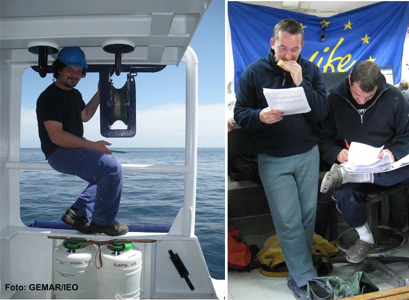 A pesar de la modificación que el Teniente de Navío Daniel Gutiérrez de la Flor revisa pormenorizadamente, hemos podido hacer unos levantamientos batimétricos de escándalo. La resolución de la sonda multihaz es de categoría. Nos permite visualizar detalles hasta ahora nunca vistos. No se queda muy atrás la sonda Paramétrica (topas) que nos facilita la comprensión de los relieves, ofreciendo una disección del interior de los volcanes mostrándonos muchos de los rasgos acústicos que caracterizan los conos de fango saturados en gas. Por ejemplo, las chimeneas acústicas que provocan las expulsiones de gas, poniendo de manifiesto con ello que se trata de focos activos de expulsión de fluidos. Esta revisión de los datos batimétricos (multihaz) y de la sísmica de muy alta resolución (topas) favorece la toma de decisiones que hemos de realizar en cada momento de la campaña. Esos datos nos permiten establecer con exactitud el punto que debemos muestrear y el trazado de la línea de VOR APHIA 2012 que debemos de extender. En el Plan de Campaña ya habíamos reflejado los puntos de muestreo, a tenor de la información disponible en nuestras bases de datos. Pero cuando estamos a bordo, después de realizar los levantamientos batimétricos, podemos resituar los puntos prestablecidos para tener más precisión en nuestras valoraciones sobre el hábitat 1180 que estamos tratando de caracterizar.