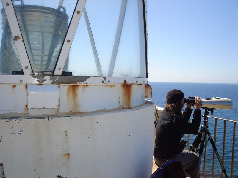 Realizando avistamientos desde el faro de la isla / Undertaking whale watching from the ligthouse of the Isla de Alborán ©ALNITAK