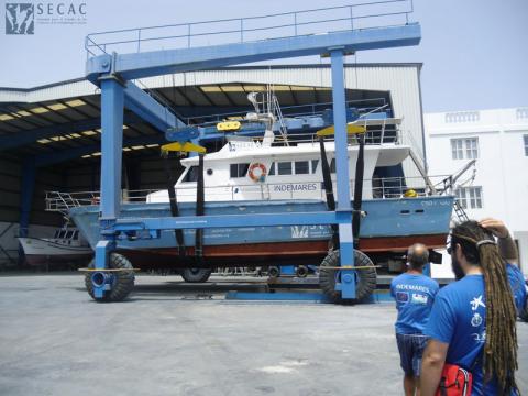 Con la embarcación Oso Ondo en el varadero (nueva capa de antifouling y mantenimiento de hélice y motores que no puede retrasarse más) se prepara el auxiliar Chacalote para realizar un muestreo en la zona más costera del área de estudio. Además, una vez señalados los avistamientos del delfín mular (Tursiops truncatus) en el área, especie prioritaria y objetivo fundamental dentro de las campañas INDEMARES, puede apreciarse el gran número de encuentros que la SECAC ha tenido con esta especie en zonas muy cercanas a la costa. Es importante hacer un esfuerzo de fotoidentificación en delfines mulares para demostrar que los delfines que usan el sur de Fuerteventura pertenecen a la misma población que los que se avistan en todo el oriente de Fuerteventura y sobre todo en el oriente y norte de Lanzarote, señalando que su área de distribución es más amplia, cuestión importante para la futura delimitación de un posible LIC en toda esta zona. Así pues nos disponemos a hacer unas salidas al mar más intensivas en las zonas potenciales de observación de esta especie con la embarcación neumática.