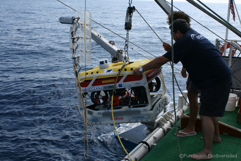 Aprieta el calor tanto en cubierta como dentro. La inmersión se da por terminada a las 13:32h, ha sido interesante, se han identificado unas cuantas especies, otras poca quedan de deberes para casa. A las 14.06 el ROV está arriba. Después de comer, continuaremos.
