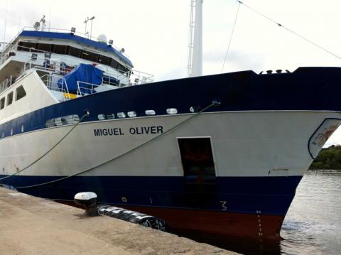 Con un equipamiento tecnológico puntero, el Miguel Oliver cuenta con tres radares, tres ecosondas y seis laboratorios, además de sofisticados sistemas de posicionamiento y navegación. El barco presume de ser uno de los más ecológicos y silenciosos del mundo, gracias a su sistema de propulsión diesel y eléctrica, destacando la baja emisión de vibraciones del buque, “con las ventajas que ello implica para las especies pelágicas y en general para el medio marino”, me explicó al respecto el capitán del Miguel Oliver.