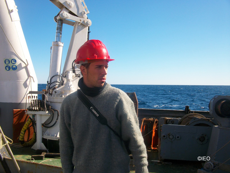 Melo estudió Biología en la Universidad de Vigo. José Luís Rueda acostumbra a comentar que le tranquiliza trabajar con él, pues a Melo no se le pasa una. Está atento a todo cuanto se mueve a si alrededor, particularmente a los detalles de envasado y etiquetado de las muestras, de forma que todo quede correctamente catalogado y registrado. Esto, a decir de Jose, es importantísimo pues cuando regresen al laboratorio se avanzará más rápido si la catalogación y organización de las muestras se ha realizado correctamente. Melo es capaz de tamizar las muestras o busca especímenes entre las rocas y chimeneas extraídas del fondo. Su discreción le hace hablar bajo, no levanta la voz para nada, casi susurra, pero vale la pena acercarse a él porque suele contar cosas divertidas e interesantes. En la actualidad está contratado por el Proyecto INDEMARES/CHICA, para lo cual ha tenido que pasar un proceso selectivo en el que ha alegado méritos y experiencia, que sin lugar a dudas debe de tener más que sobrados a tenor de lo que todos podemos ver que hace. A la vez que trabaja en el IEO, está haciendo un Master en la Universidad de Cádiz sobre Acuicultura y Pesca, que se imparte en la Facultad de Ciencias del Mar y Ambientales. Ha propuesto hacer la tesis de máster bajo la tutoría de José Luís Rueda, con quién se ha manifestado como un avezado colaborador.