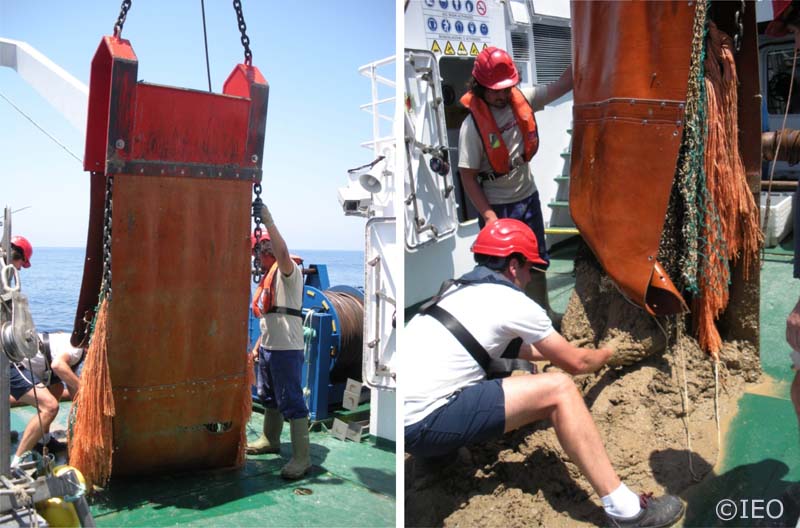 De camino a Gazúl avistamos una tortuga boba solitaria (36º 33´02.93´´ N/6º 34´ 54.69´´ W). Llegamos a la vertiente sur del volcán de fango y largamos una draga de arrastre. Se obtiene gran cantidad de fauna, que listaremos los próximos días, empastados en una masa de sedimento fango arenoso bioclástico. Comenzamos la labor de tamizado de muestras. Nos afanamos en procesar lo más rápidamente posible porque, apenas empezar, ya nos anuncia el puente la proximidad de la siguiente estación. Cambiamos de sistema de muestreo y preparamos el Beam Trawl y realizamos dos arrastres consecutivos. Uno de 5 minutos y el segundo de 15 minutos. La cantidad de fauna que recogemos con las redes de este sistema, es verdaderamente sorprendente.