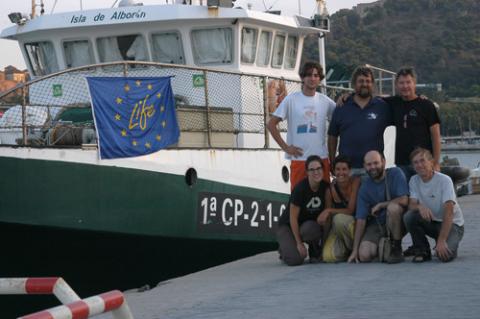 Finalmente, se confirma que para el jueves mejora así que llamada general, el miércoles por la noche zarpamos. En esta parte de la campaña somos también siete científicos a bordo: Serge Gofas, Sebastián Martín y Nander Sevilla (Universidad de Málaga), Pablo López (Universidad de Sevilla), Marta Pola (Universidad Autónoma de Madrid), Juan Junoy (Universidad de Alcalá de Henares) y Cèlia Sitjá (Centro de Estudios Avanzados de Blanes). Seguimos en el Isla de Alborán, con la misma tripulación: Juan, el patrón, José Luis y Pepe, a quienes conocimos en la primera parte de la campaña.
