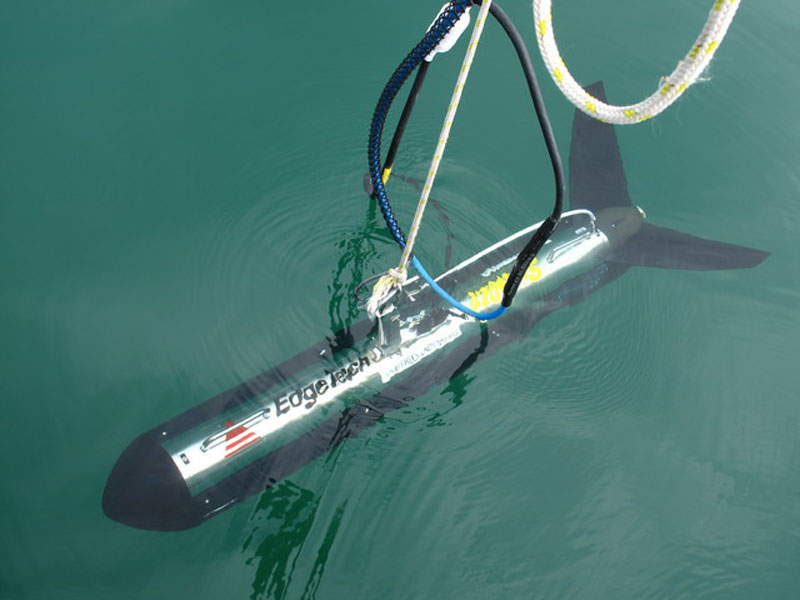 Durante los meses de febrero y marzo de 2010, con ayuda de un sonar de barrido lateral de alta frecuencia se consiguió realizar una prospección de la bahía de cobertura completa, en base a un diseño de muestreo sistemático siguiendo un patrón de transectos paralelos y transectos de cierre. El sonar envía sonido a alta frecuencia en continuo (se trabajó con varias frecuencias, hasta los 900 kHz), y recibe el eco en tiempo real, que es interpretado por la unidad de control y transformado en un "sonograma" en el que pueden apreciarse formas y texturas (según la intensidad del eco recibido) del fondo marino con elevada definición. Por tanto, se genera una imagen de gran detalle de todo el lecho de la masa de agua prospectada, siendo posible "ver" los objetos bajo la superficie. Ésta era la primera vez que se utilizaba esta técnica en el estudio de tortugas bajo el agua, y ha resultado muy útil para el estudio de grandes áreas. Siendo un trabajo con un notable componente experimental, se realizaron una serie de calibraciones y ensayos (sondeo e identificación de distintos objetos conocidos), lo que ha permitido poner a punto la técnica, que ahora está disponible para nuevos estudios en otras zonas, así como para sentar unas bases de optimización de la misma.