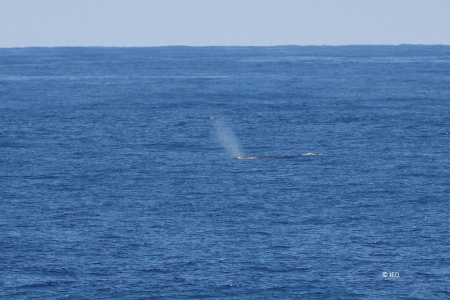 El día 2 comienzan los muestreos hacia las 11 de la mañana, y finalizan a última hora, tras haber largado el GOC, el bou y el trineo, de nuevo a profundidades cercanas a los 1.700 m. Los “de peces” (los ictiólogos Rafa, Juan Carlos y Cristina, y la estudiosa de la dieta de los peces, Izaskun) insisten en llevarnos a los abismos, a la búsqueda de nuevos hallazgos que compiten entre sí en su aspecto extraño y monstruoso (los peces). Aprovechando el intervalo de tiempo y la mar en calma, muchos de nosotros subimos al puente, para otear a la busca de cetáceos. La suerte nos premia con un grupo de delfines comunes ¡y un par de cachalotes! Martí, nuestro ornitólogo embarcado nos da cuenta de las aves que los que trabajamos “abajo” nos perdemos: pardelas, paíños, gaviotas sombrías, charranes, alcatraces y algún que otro falaropo.