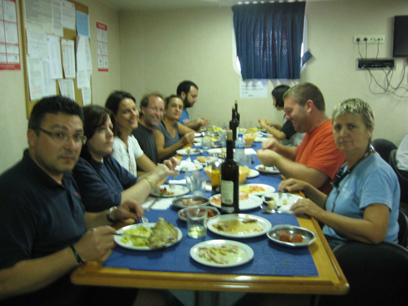 El día 1 de septiembre fuimos al puerto de Alcudia, pero no se desembarcó ya que subieron y bajaron a los científicos y el material en el bote auxiliar del barco, por lo que no pisamos tierra desde el 27 de agosto. Esto, para quien no está acostumbrado, puede resultar un poco duro, deseando llegar a tierra.