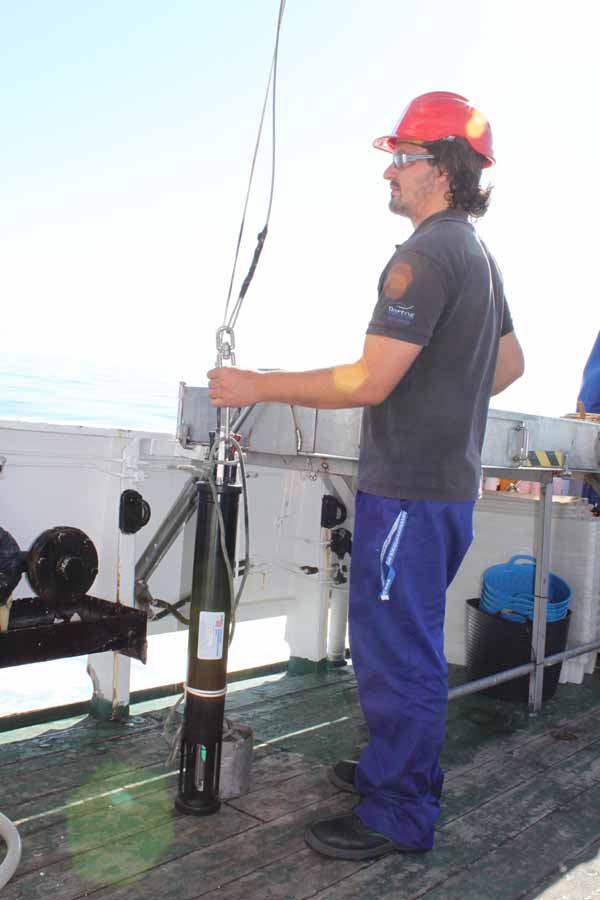 Mientras unos atienden los sistemas de adquisición de datos, otros nos sumergimos en la discusión para la elección de los mejores puntos para realizar el muestreo biológico, sedimentológico y geoquímico. Hay gustos para todos y oportunidades para cada uno. Cada cual pretende argumentar las excelencias de los puntos que más le interesan, encontrándose con que otros argumentan las mismas excelencias para otros lugares tan interesantes como los anteriormente apuntados. Es así la interdisciplinaridad. Si por nosotros fuera, estaríamos todos los días prospectando el fondo, y aún cuando hubiéramos acabado, todavía seguiríamos pidiendo otra oportunidad para muestrear aquel punto que se nos quedó sin toquetear.