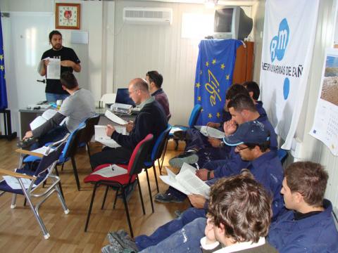 Other news from the 2010 campaigns is that the team of researchers who collaborate, within the framework of the INDEMARES project, with the team that monitors the marine and fishing reserve of Alborán, supported by the Secretary-General of Marine Affairs, has organized a series of informative and educational lectures on the INDEMARES project and on how to identify the different species of cetaceans present in the Alboran Sea. The lectures are aimed at the team that monitors the marine and fishing reserve on Alboran Island, as well as the military employees that are also deployed there.