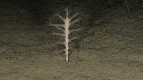 Nos hemos despedido por este año de esta montaña con una inmersión profunda, a más de 400 metros, y que supone realizado la inmersión nº 21 de este año en el seco, de un total de algo más de 60 ya realizadas durante 4 años de investigación. Ha sido una buena inmersión, encontrando un saludable campo de coral bambú (Isidella elongata), una de nuestras gorgonias favoritas, ya que se la daba por desaparecida en el Mediterráneo debido a la agresión de la pesca de arrastre sobre los fondos fangosos, que es donde se desarrolla; pero, por suerte, hemos dado tanto en el canal de Mallorca (Islas Baleares) como aquí, con zonas donde aún sobrevive.