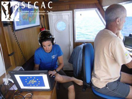 Así, durante los dos primeros días de campaña se registró la presencia de varios grupos y especies de cetáceos. Los delfines moteados del Atlántico (Stenella frontalis) y los delfines listados (Stenella coeruleoalba) han sido frecuentes durante los últimos meses debido a la abundancia de cardúmenes de presas, a cuyo banquete acuden también los delfines comunes (Delphinus delphis) que, sin embargo, no aparecieron estos dos días. Sin embargo otra especie frecuente en la depredación de estas pequeñas presas, el rorcual tropical (Balaenoptera edeni), no sólo fue avistado sino que apareció en compañía de crías. Los delfines mulares (Tursiops truncatus), calderones tropicales (Globicephala macrorhynchus) y zifio de Cuvier fueron las otras especies registradas por la SECAC. De hecho, y gracias al análisis de Foto-identificación, se comprobó que el grupo de delfines mulares, de más de 70 animales, coincidía con los avistados dos meses atrás frente al Sur de Lanzarote, integrado por individuos de todas las clases de edad incluyendo a varios neonatos.