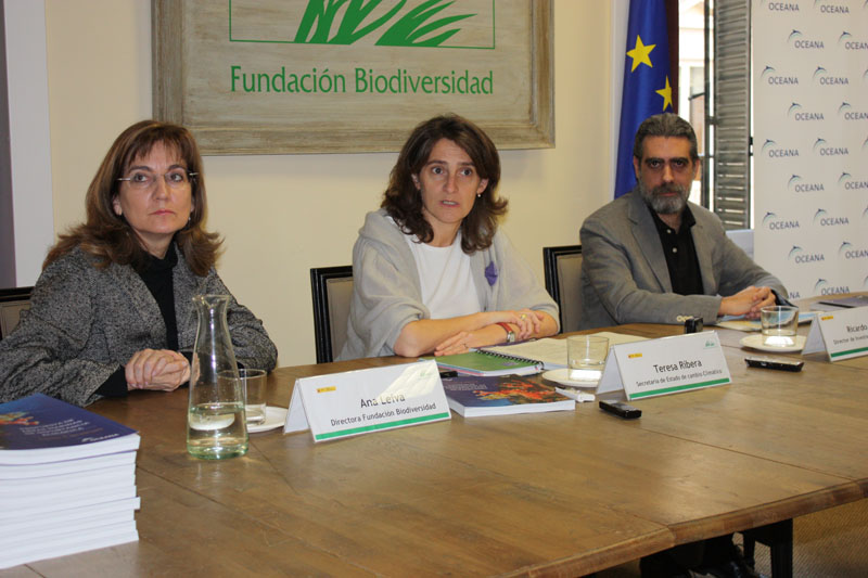 La secretaria de Estado de Cambio Climático, Teresa Ribera, ha presidido el jueves 31 de marzo, en la sede de la Fundación Biodiversidad, la presentación del informe "Propuesta de áreas marinas de importancia ecológica. Islas Canarias", elaborado por Oceana, con el apoyo de la Fundación Biodiversidad del Ministerio de Medio Ambiente, y Medio Rural y Marino.