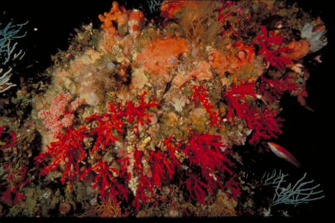 En algunas partes del transecto, se observó que los rodolitos llegan a formar una capa continua concrecionada, sobre la cual se asienta una epifauna con abundantes gorgonias y esponjas. Al mismo modo, los límites de la roca circalitoral (hábitat coralígeno) y de la roca profunda, coinciden con las gorgonias circalitorales del género Eunicella con una ocurrencia excepcionalmente somera de Callogorgia verticillata (característica de la “roca profunda” circalitoral y también del piso batial). De manera que en la pendiente norte de la llanura, se observan fondos arenosos con muchas marcas de arrastre.