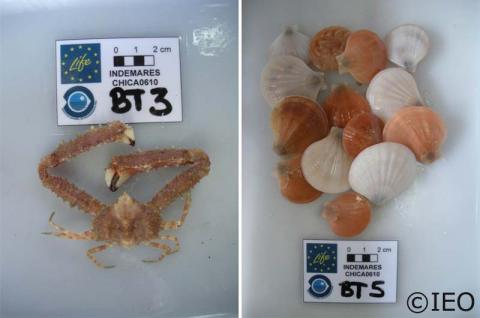 Os cito las especies que más nos han llamado la atención por su abundancia y por su representatividad en términos de ambientes y hábitats. ¿Cómo no encontrar Parapeneus longirostris? Precisamente uno de los caladeros más productivos del Golfo. Corales como Madrepora oculata, Leiopathes glaberrina, y Flabellum chunii característica de fondos blandos. Argobuccinum olearium muy abundante en las laderas del volcán. Palliolum en pockmarks. Cidaris cidaris muy extendido en toda la zona. Parthenope macrochelas en ambientes de volcán.