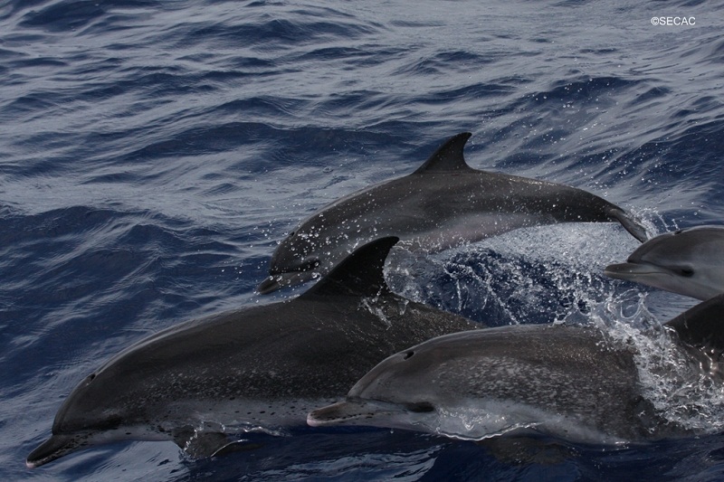 Grupo de delfines moteados (Stenella frontalis) ©SECAC