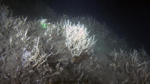 Se han analizado en detalle un total de 20 de los 33 transectos de video de las campañas INDEMARES 0 y I, cubriendo una superficie mayor de los 3.000 m2 que corresponde a más de 11.000 m2 lineales. Este análisis ha proporcionado datos sobre densidad y distribución de los 36 taxones identificados en la plataforma continental. Así, en los transectos de vídeo se han identificado (a excepción de las esponjas y ascidias) hasta el nivel taxonómico más bajo posible 14.950 invertebrados bentónicos, correspondientes a 36 grupos taxonómicos diferentes. Entre ellos, 7 poliquetos, 18 cnidarios y 10 equinodermos, el resto siendo esponjas, ascidias, equiuros y bivalvos. Además, se observa que las especies P. spinosum y A. palmatum son las más conspicuas y que la distribución de todas las especies analizadas es muy heterogénea.