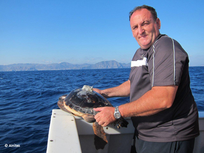 Pero, seguir marcando tortugas tiene ahora otro propósito para Alnitak. “Hilario” la nueva tortuga marcada enviará a partir de ahora y durante aproximadamente un año datos acerca sus movimientos e inmersiones que junto con los demás datos de tortugas permiten elaborar unos mapas de “zonación de riesgo” que permitirán a los pescadores evitar áreas de alta concentración de tortugas o adaptar su arte de pesca para evitar su captura accidental. En ésta ocasión la tortuga Hilario tendrá además otro cometido en el ámbito de la sensibilización ambiental y educación.